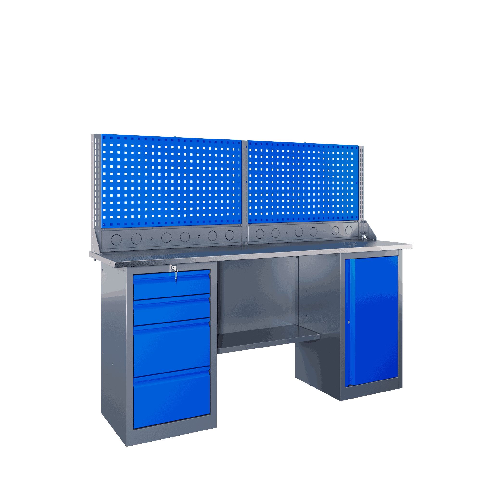 Самые компактные верстаки с глубиной столешницы 500 мм. Благодаря небольшой глубине, такие верстаки легко размещаются в ограниченных пространствах, например, в гаражах, мастерских и тд. Несмотря на компактные размеры, верстаки могут быть оснащены полками, ящиками и держателями для инструментов, что помогает поддерживать порядок и быстро находить нужные предметы.